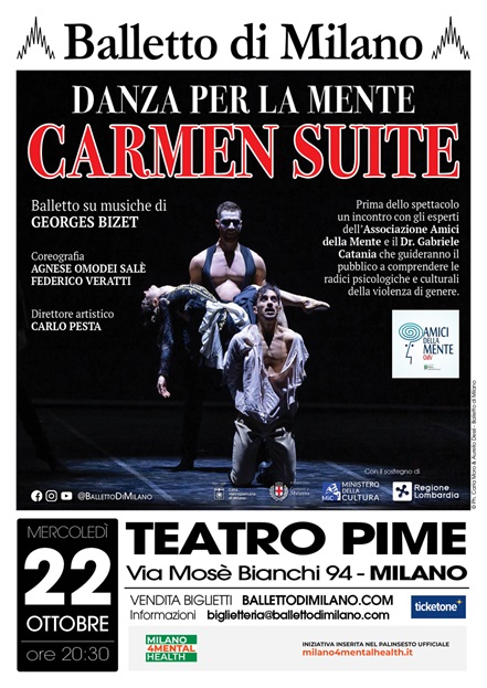Mercoledì 22 ottobre 2025, alle ore 20:30, il Balletto di Milano porta in scena, Teatro PIME (Via Mosè Bianchi 94, Milano) “Danza per la mente – Carmen suite”
